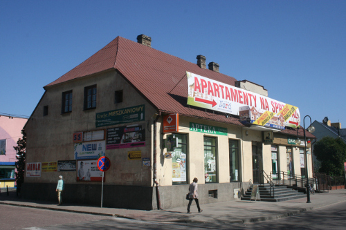Na rynku znajduje się także dworzec autobusowy, pięć sklepów z obuwiem, kebab, restauracja oraz – oczywiście – kilka oddziałów różnych banków (z bankomatami). Dla mnie najważniejszy jest najstarszy zachowany budynek w mieście. Oficjalny adres – Rynek Zygmunta Augusta 28. Nic nie świadczy, ze ten akurat budynek jest najstarszy. Niezbyt okazały z zachowaną bryłą główną budynku. Augustowianie mówią na niego „Stary Pewex”, tutaj bowiem przez lata całego PeErElu mieścił się sklep Pewexu.
