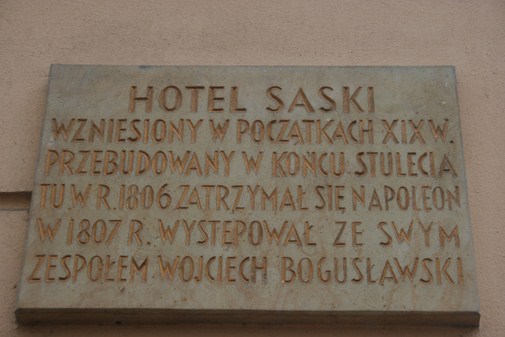 Dawny Hotel Saski i tablica pamiątkowa.