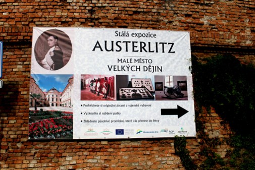 Tablica reklamująca wystawę na zamku w Austerlitz.
