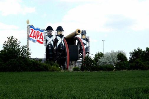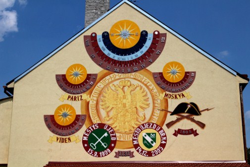 Zdarza się, że nawet na rondzie między Austerlitz a Brnem ozdobnikiem jest drewniana rzeźba cesarza. Tutaj nawet betoniarnia ma kształt wielkiej armaty i artylerzystów.