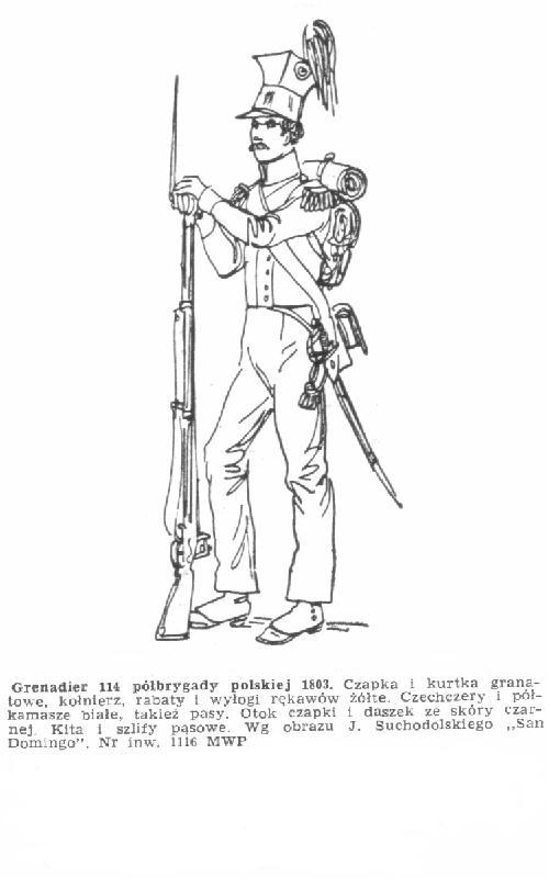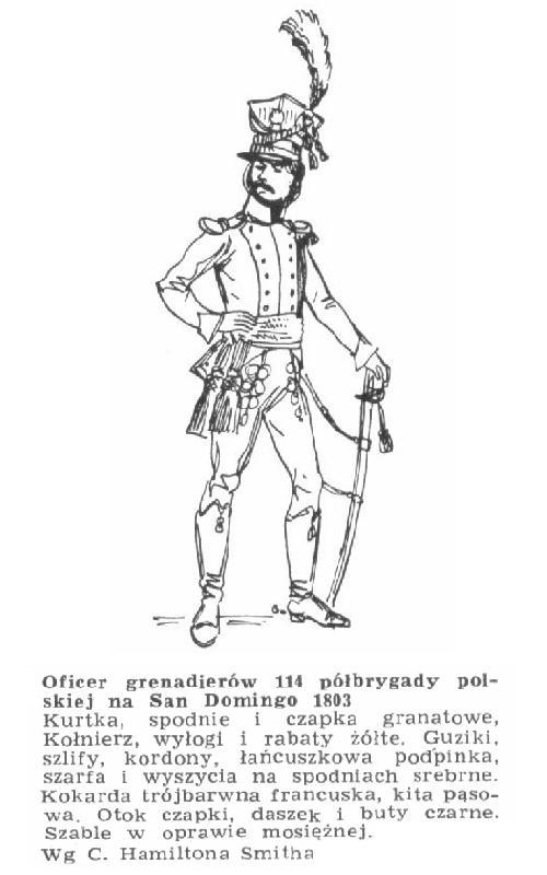 Pomineła Pani wazny okres San Domingo gdzie mundur 113 połbrygady był granatowo czerwony a 114 granatowo żółty z ciekawymi dodatkami dostosowującymi go do klimatu np. twarzowe słomkowe kapelusze... Sa nawet wspomnienia o butach tropikalnych wyfsowanych w drodze na wyspę (buty te były lzejsze od standardowych).