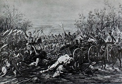 Gdy świtać zaczęło, poszedł porucznik Jaraczewski w pięćdziesiąt koni na podjazd, ujrzał istotnie szwadron geryllasów przed włością Melgar, a mając polecenie nie wdawać się w żadne rozprawy, zaczął w porządku swój odwrót; lecz Empecinando ośmielony tem wstecznem poruszeniem a nadto ufny w swe siły, kazał swoim huzarom żywo nacierać i kiedy ci mocno się zbliżyli, strzelając z ręcznej broni do naszych żołnierzy, zwrócił się Jaraczewski, uderzył w środek szwadronu Hiszpanów i w jednej chwili tych rozbiwszy, znów zaczął swój odwrót; w tej przeprawie miał dwóch ludzi zranionych, z których jednemu spadła czapka na ziemię, do niej więc leciały geryllasy, gdyż ta miała być ich całą zdobyczą; co widząc porucznik Jaraczewski, krzyknął do swoich ułanów: „Nie dajmy polskiej czapki Hiszpanom”, a uderzywszy na nich, powtórnie rozpędził, czapkę odebrał i trzech geryllasów wziął do niewoli… (Stanisław Hempel).