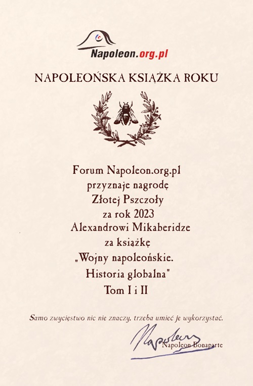 Jury konkursu "Złota Pszczoła" na Najlepszą Napoleońską Książkę roku 2023 ogłasza, że zwycięzcą tegorocznej edycji został wolumin: