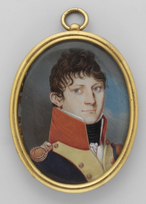 Miniatura przedstawiająca oficera p4p w mundurze I legii warszawskiej ze zbiorów Muzeum Narodowego w Warszawie.