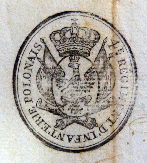 Pieczęć pułku 4 piechoty Księstwa Warszawskiego - odcisk w zbiorach Muzeum Wojska Polskiego w Warszawie.