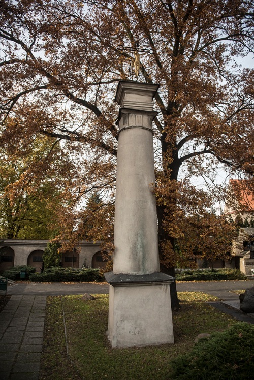 Obelisk-kolumna ku czci zmarłych żołnierzy napoleońskich na dziedzińcu dawnego klasztoru bernardynów (obecnie jezuitów), przy kościele p.w. Nawiedzenia NMP.Na czworobocznej podstawie kolumna z bezstylowym kapitelem (dawniej być może jońskim), na którym czworoboczny, profilowany pseudo-architraw. Całość zwieńczona metalowym krucyfiksem.