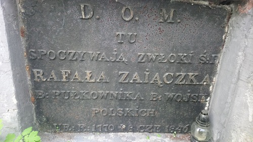 „D.O.M. / TU / SPOCZYWAJĄ ZWŁOKI /RAFAŁA ZAIĄCZKA /B. PUŁKOWNIKAB. WOYSK / POLSKICH / UR: R. 1770 + 8 CZE. 1846 //