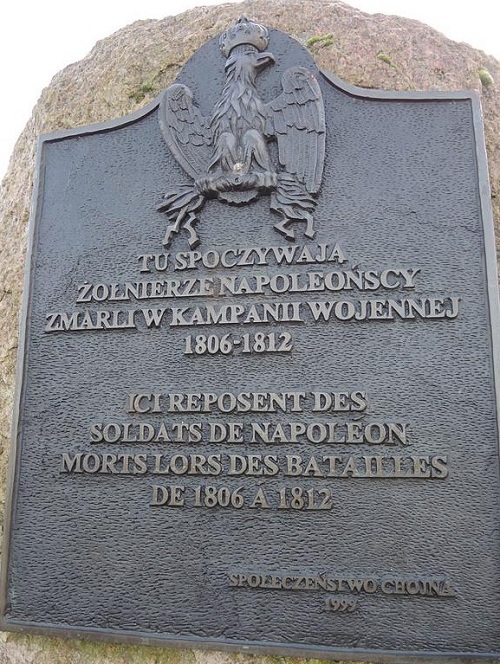 Poniżej tłumaczenie inskrypcji na język francuski: „Ici reposent des / soldats de Napoléon / morts lors des batailles / de 1806 á 1812” oraz podpis: SPOŁECZEŃSTWO CHOJNA 1999 //