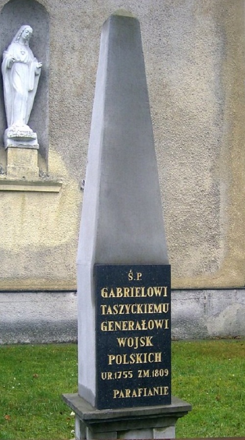 Na cmentarzu przykościelnym nagrobek Gabriela Taszyckiego, generała wojsk polskich. Nagrobek w formie czworobocznego obelisku ze współczesną tablicą z inskrypcją. Pierwotnie na tablicy widniał napis: