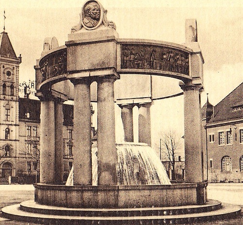 Przed dworcem kolejowym Fontanna Jubileuszowa z granitu zbudowana w 1913 r. dla uczczenia zwycięskiej „wojny wyzwoleńczej” i dynastii Hohenzollernów. Pomnik w formie pierścienia wspartego na czterech parach kolumn. Na pierścieniu znajdowała się m.in. scena przedstawiająca przysięgę korpusu von Lützowa, a w zwieńczeniu kolumn medalion z brązu przedstawiający Fryderyka Wilhelma III i królową Luizę. Po 1945 r. nadbudowa pomnika zniszczona, pozostała jedynie fontanna. Zniszczone elementy wrzucono do rzeki, z której zostały wydobyte w 2000 r. Ocalałe fragmenty pomnika wyeksponowane w lapidarium chojnowskiego muzeum.