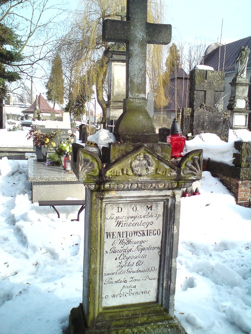 D.O.M. / Tu spoczywają zwłoki ś. p. Wincentego / Wenitowskiego / b. Wojskowego / z Gwardyi Napoleona / i Obywatela / Żył lat 69 / zmarł d: 11 grudnia 1853 r. / Pozostała Żona i Dzieci / proszą / o westchnienie. //