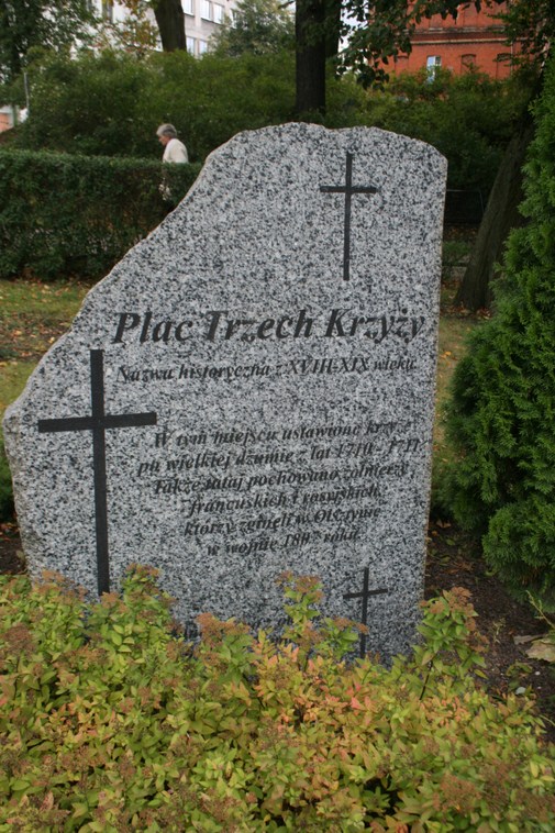 Na zamku olsztyńskim urządzono lazaret, wielu chorych i rannych kurowało się w prywatnych domach. Umierali zaś w Olsztynie nie tylko żołnierze, ale i mieszkańcy. Tylko w kwietniu zmarły 104 osoby, a w całym 1807 roku – 437 (Olsztyn liczył wtedy 2 tys. mieszkańców). Przykościelny cmentarz i cmentarz miejski zostały szybko przepełnione, więc zaczęto chować zmarłych przy drodze do Dobrego Miasta (dzisiaj ulica 1 Maja), na niewielkim pagórku z trzema drewnianymi krzyżami. Miejsce to z czasem zaczęto nazywać Placem Trzech Krzyży. Nazwa została przywrócona w roku 2004 – wtedy też postawiono tutaj pamiątkowy kamień.