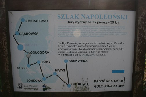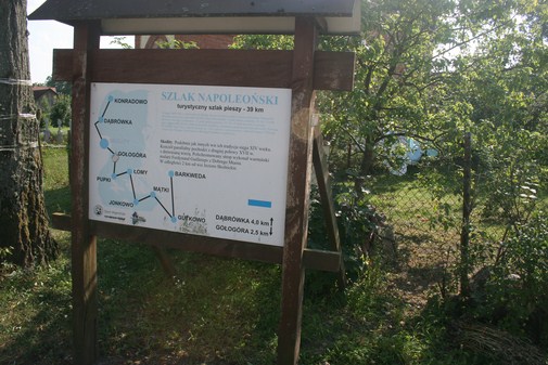 Dawna plebania, na której nocował Napoleon to dzisiaj siedziba sołectwa. Niestety, na budynku nie zawisła jeszcze żadna tablica upamiętniająca pobyt cesarza. Jednak między domem a furtką prowadząca na teren kościoła, postawiono tablicę z oznakowanym Szlakiem Napoleońskim. Stowarzyszenie „Dom Warmiński” powstałe w 2006 roku z inicjatywy Starostów Olsztyńskiego, Braniewskiego i Lidzbarskiego, wystąpiło z inicjatywą wytyczenia szlaku turystycznego, oznakowanego w terenie poglądowymi tablicami ilustrującymi napoleońską kampanię. Szlak ma długość 30 kilometrów i poprowadzono go przez wioski warmińskie, w których w lutym 1807 roku wojska napoleońskie walczyły z Rosjanami. Szlak zaczyna się w Barkwedzie, gdzie 3 lutego 1807 roku miała miejsce ciężka i krwawa bitwa o przeprawę na rzece Łynie, następnie prowadzi przez Gutkowo, Mątki, Jonkowo, Łomę, Pupki, Gołogórę, Skolity, Dąbrówkę do Konradowa (tutaj wojska marszałka Neya natarły na tylną straż rosyjskiej armii).