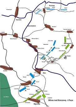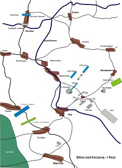 Podczas gdy główne siły Armii Bobru wychodziły na Płaskowyż Janowicki na południu, między Mniszym Lasem i Łaźnikami V korpus gen. dyw. Lauristona przy wsparciu 35 dywizji piechoty gen. bryg. d'Henina z XI korpusu gen. dyw. Gerarda odrzuciły, stanowiący przednią straż lewego skrzydła Armii Śląskiej, rosyjski VI korpus gen. por. Szczerbatowa prowadzony osobiście przez gen. hrabiego Langerona. Wobec przewagi przeciwnika Rosjanie cofnęli się za linię Błotnicy i około godz. 12.30 rozwinęli się między Męcinką i Słupem. W pierwszej linii na lewym skrzydle stanął VIII korpus piechoty gen. por. de Saint-Priesta (ok. 7.000 piechoty, 1.400 regularnej kawalerii i 1.200 Kozaków, 48 armat). W centrum rozwinął się IX korpus piechoty gen. por. Ołsuwiewa (6.800 piechoty, 24 armaty). Prawe skrzydło zajął VI korpus piechoty gen. por. Szczerbatowa (9.400 piechoty, 24 armaty). W drugiej linii jako odwód znalazł się X korpus piechoty gen. por. Kapcewicza ( ok. 8.000 piechoty i 36 armat), I korpus kawalerii rezerwowej gen. por. Korffa (2.700 kawalerii regularnej i 4.500 Kozaków) oraz artyleria rezerwowa (55 armat)