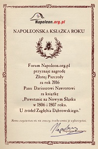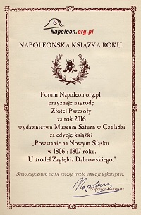 Jury konkursu "Złota Pszczoła" na najlepszą napoleońską książkę roku 2016 ogłasza, że zwycięzcą tegorocznej edycji został wolumin: